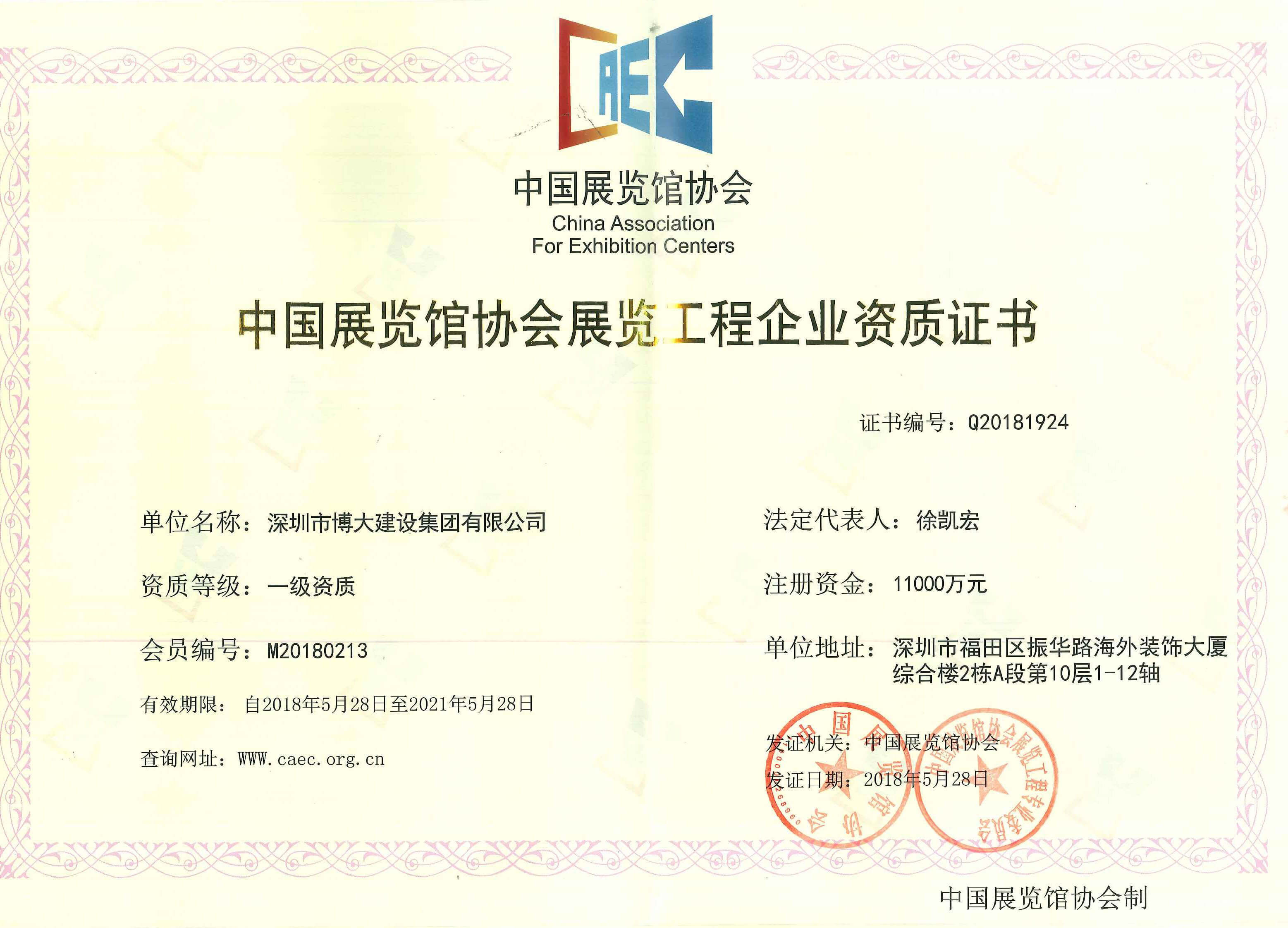 資質(zhì) | 博大獲得展覽工程兩個(gè)一級(jí)資質(zhì)