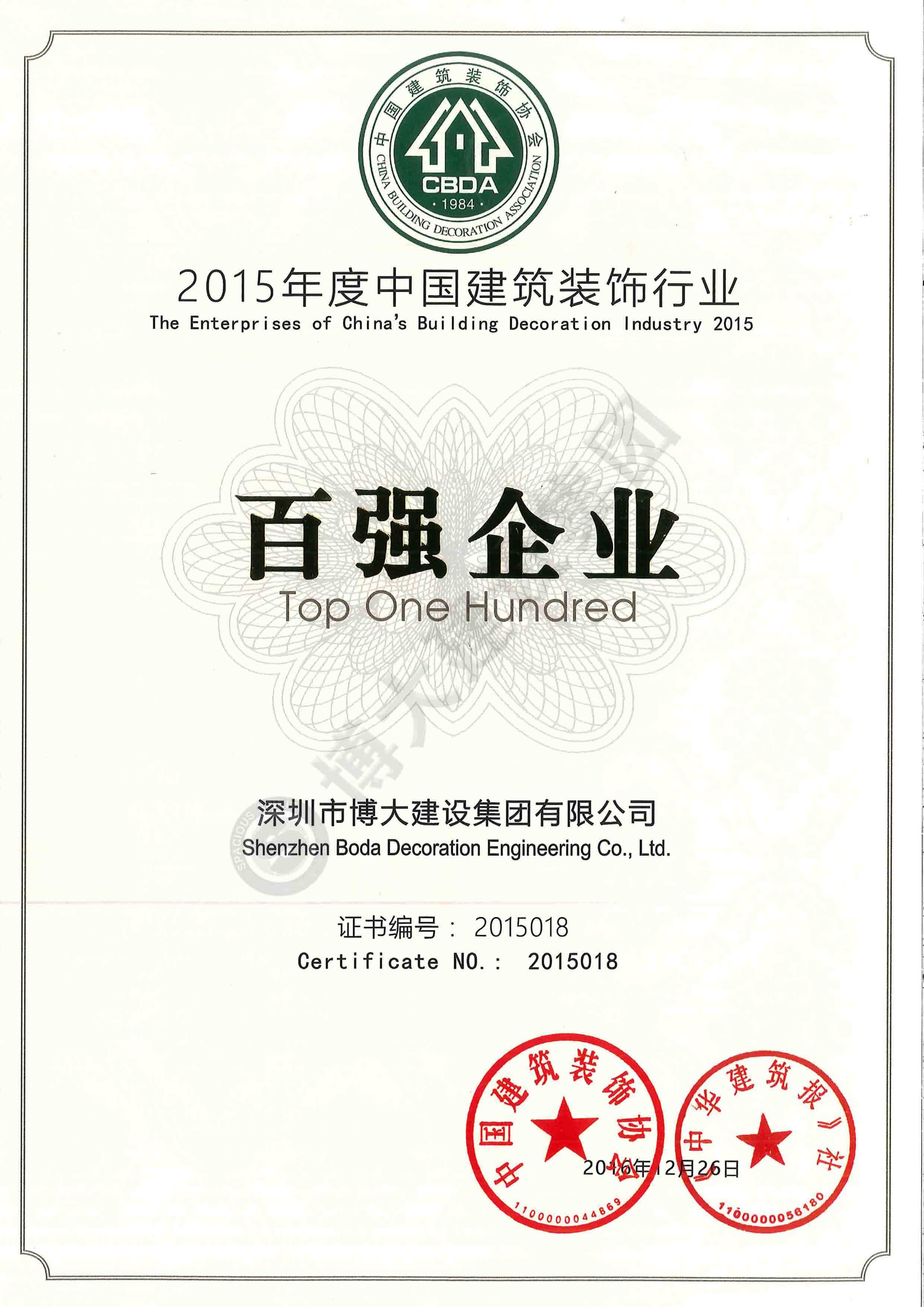 2015中國(guó)建筑裝飾行業(yè)百?gòu)?qiáng)企業(yè)