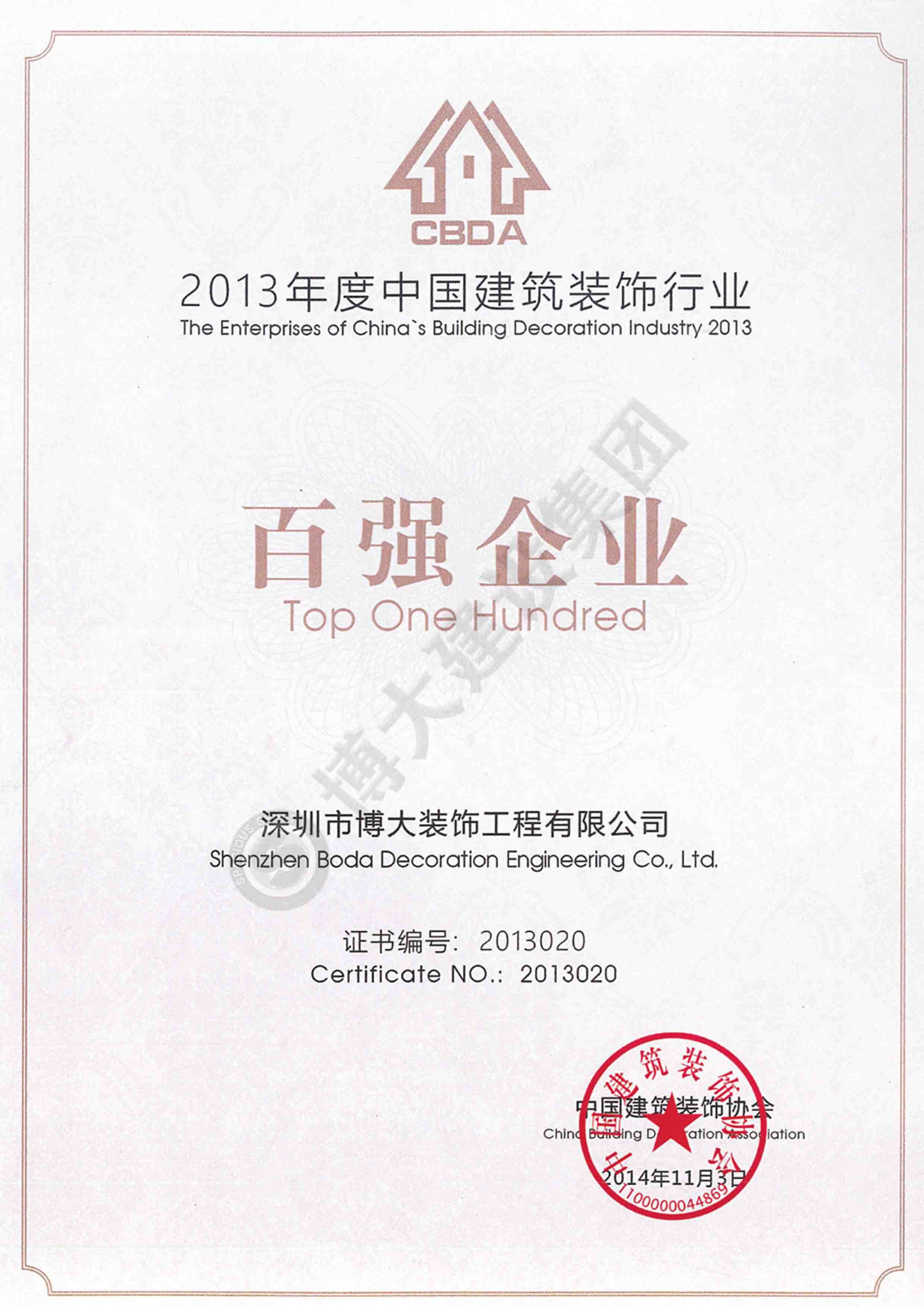 2013中國(guó)建筑裝飾行業(yè)百?gòu)?qiáng)企業(yè)