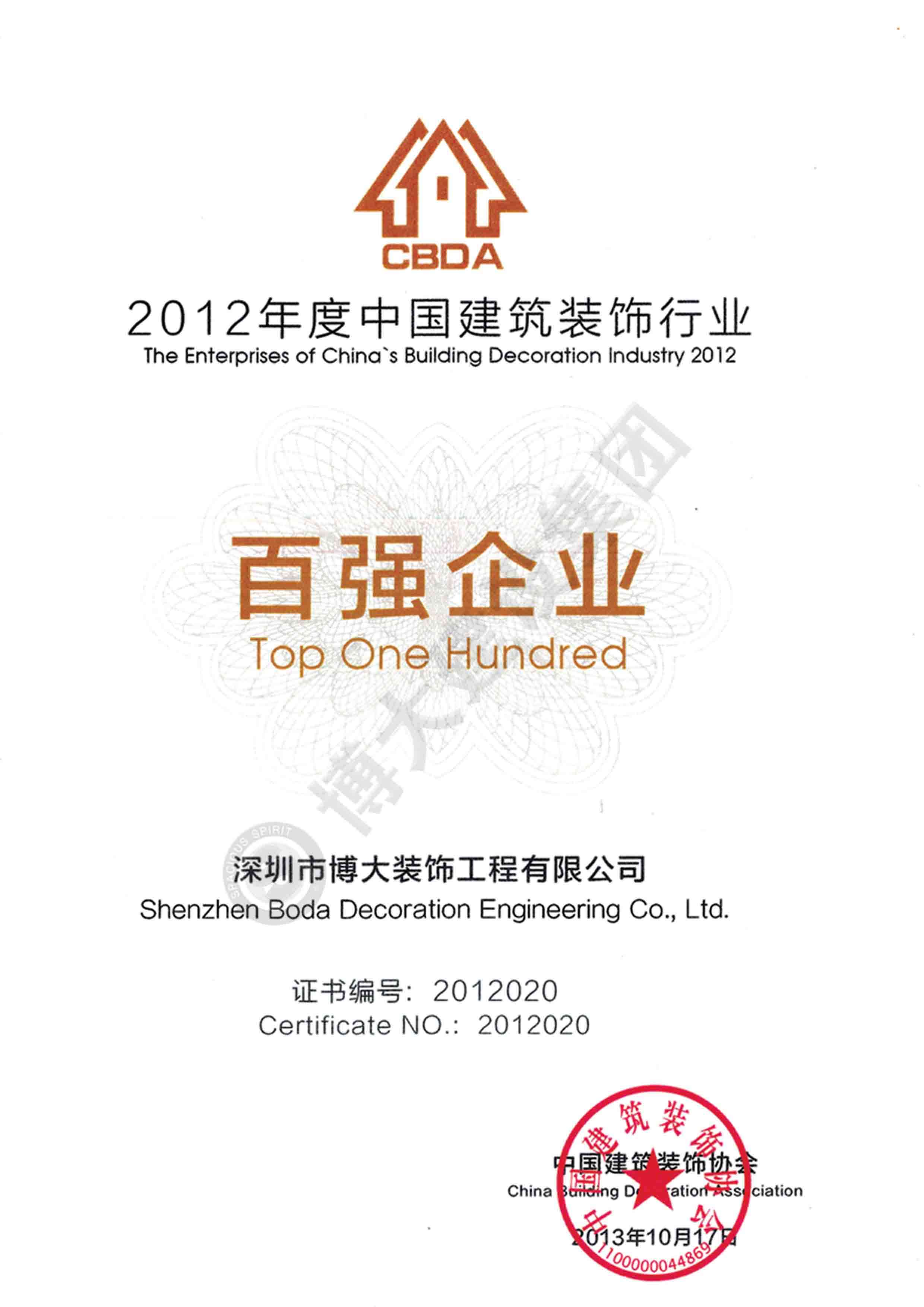 2012中國(guó)建筑裝飾行業(yè)百?gòu)?qiáng)企業(yè)