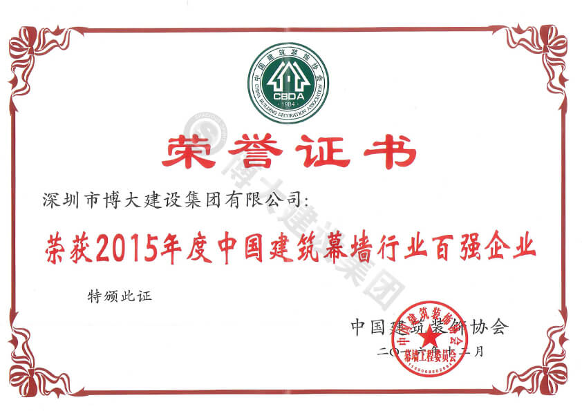 2015年度中國(guó)建筑幕墻行業(yè)百?gòu)?qiáng)