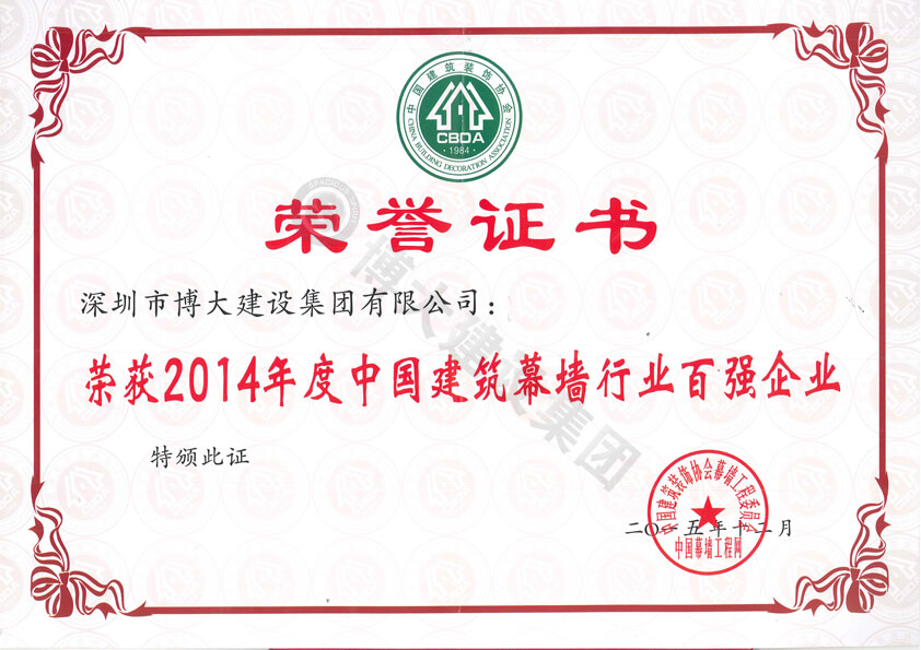2014年度中國(guó)建筑幕墻行業(yè)百?gòu)?qiáng)企業(yè)