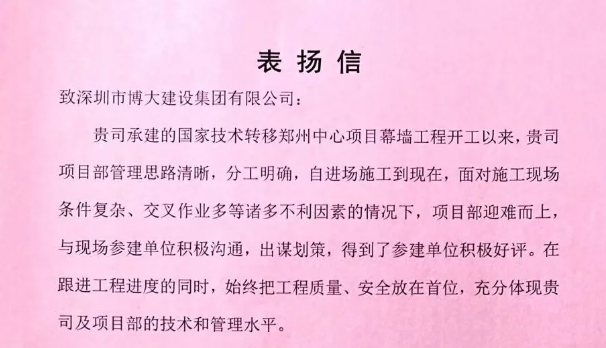 博大榮譽(yù) | 以優(yōu)質(zhì)履約贏得三方表?yè)P(yáng)