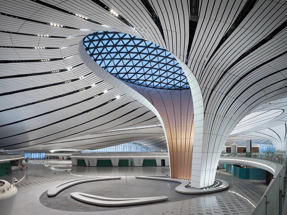北京大興機場航站樓建設(shè)面積達140萬平方米,是世界上規(guī)模最大的單體航站樓。首次采用“放射”狀五指廊構(gòu)型。中心點到最遠端是600米,走路最多8分鐘就能登機。