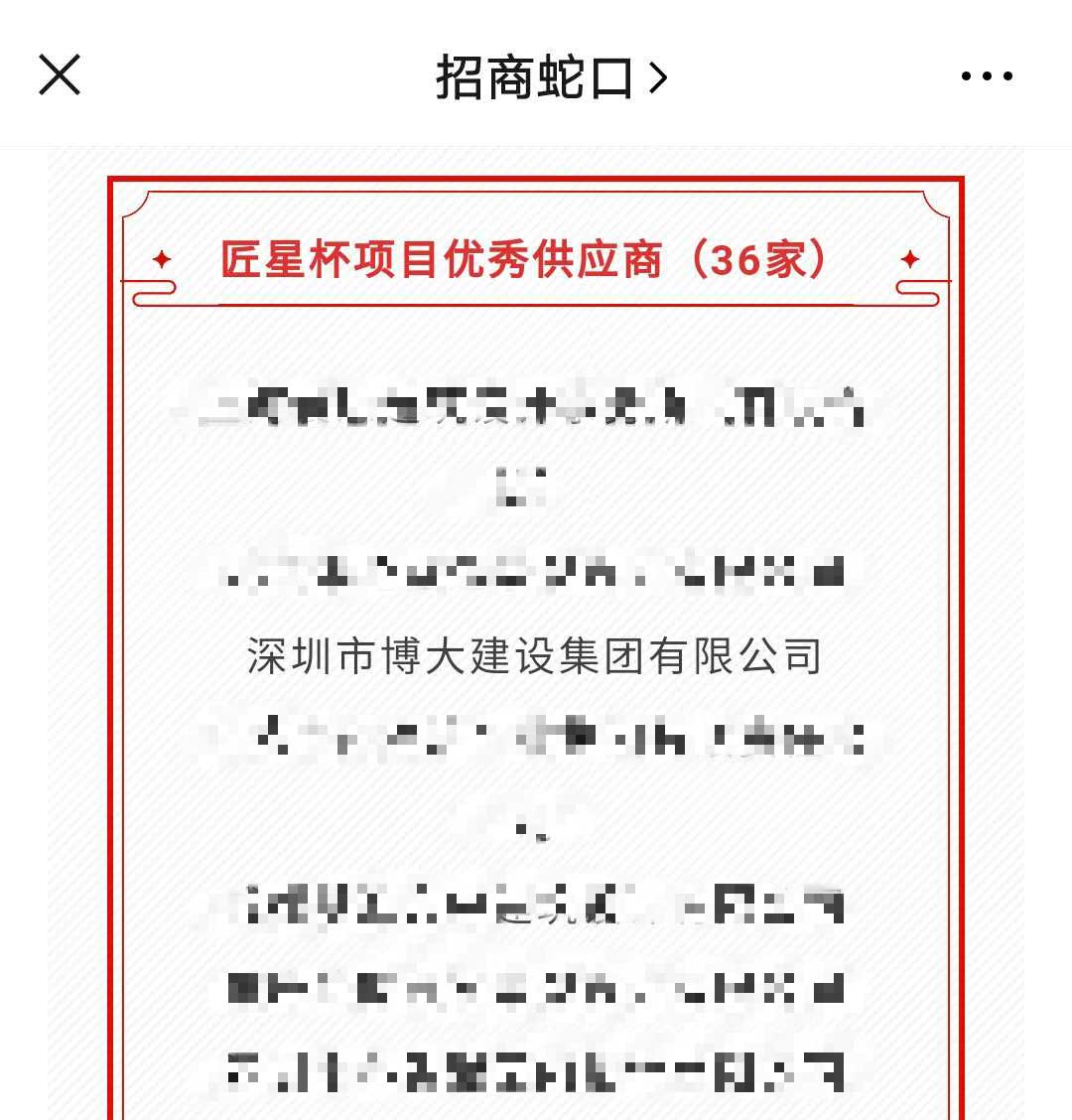 博大建設集團作為招商蛇口的長期合伙伙伴,繼獲得“2018年度優秀新供應商”后,再次榮獲“匠星杯項目優秀供應商”稱號。
