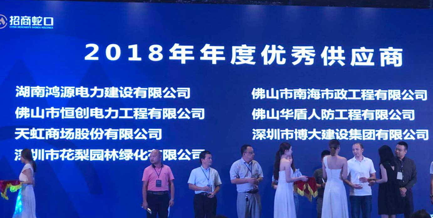 2018年9月,招商蛇口佛山公司舉行2018年度供應(yīng)商大會,深圳市博大建設(shè)集團有限公司憑借過硬的工程質(zhì)量、嚴(yán)格的工期保障、讓顧客有幸福感的服務(wù)態(tài)度,榮獲招商蛇口佛山公司“2018年度優(yōu)秀新供應(yīng)商獎”。